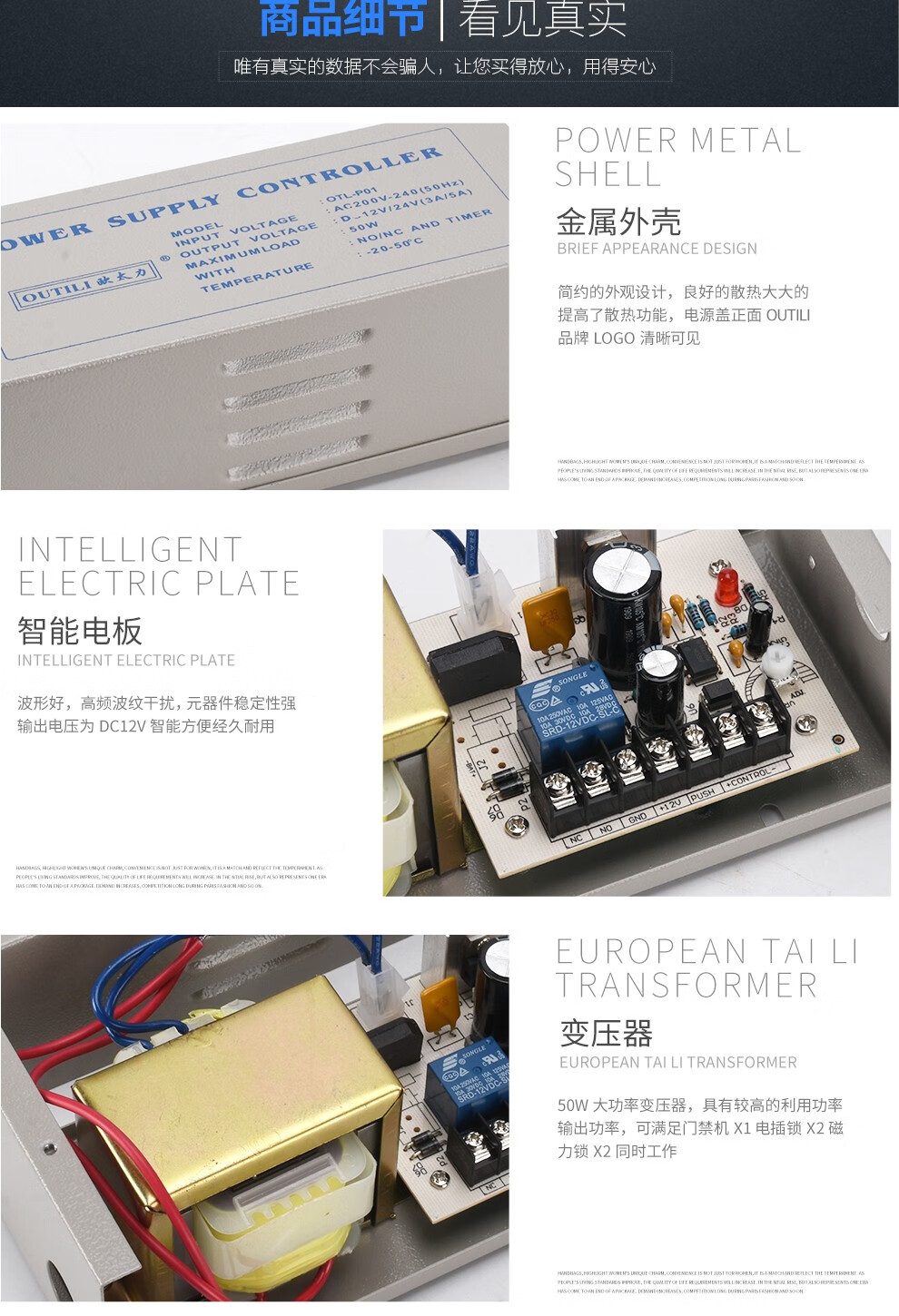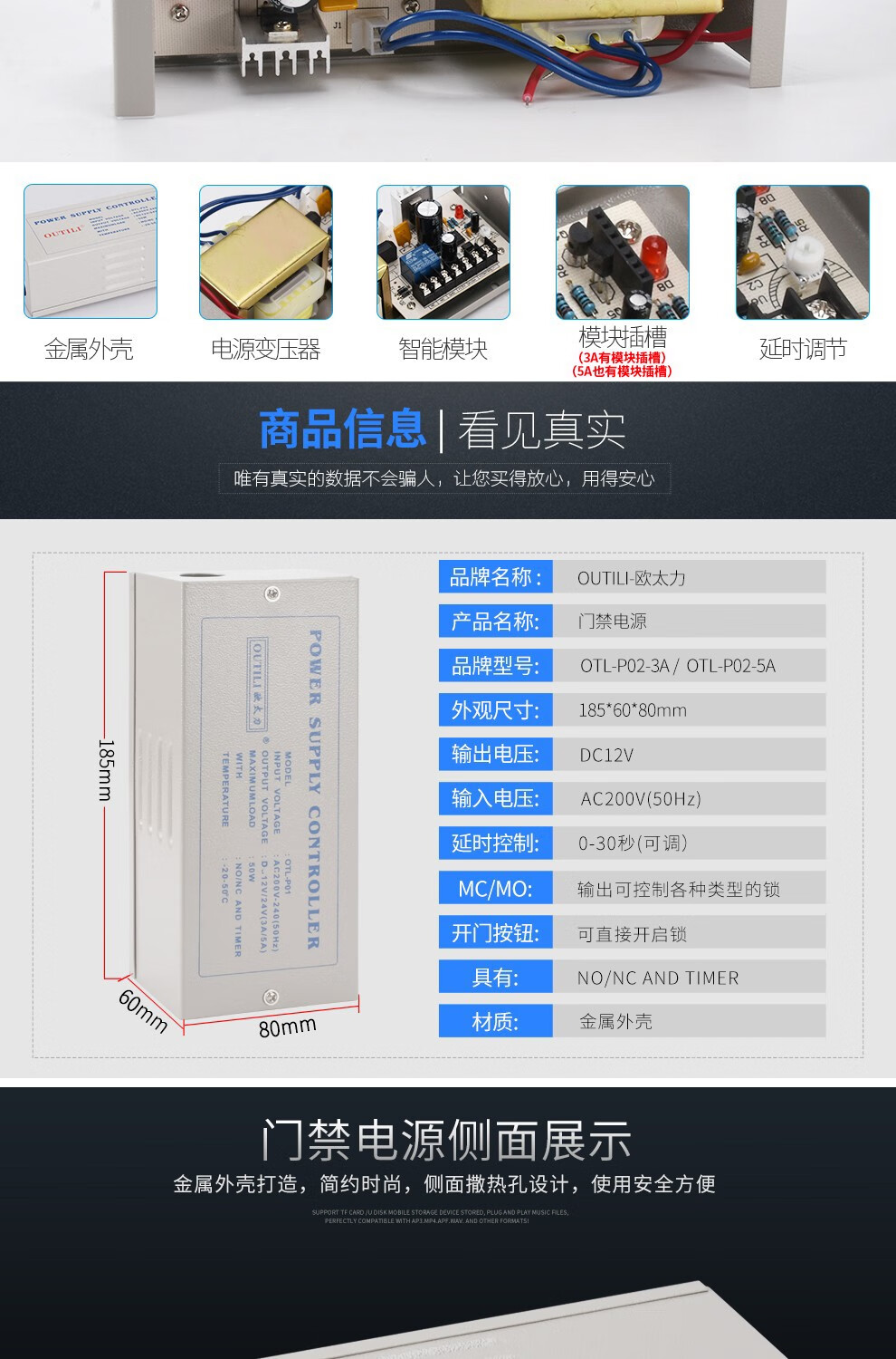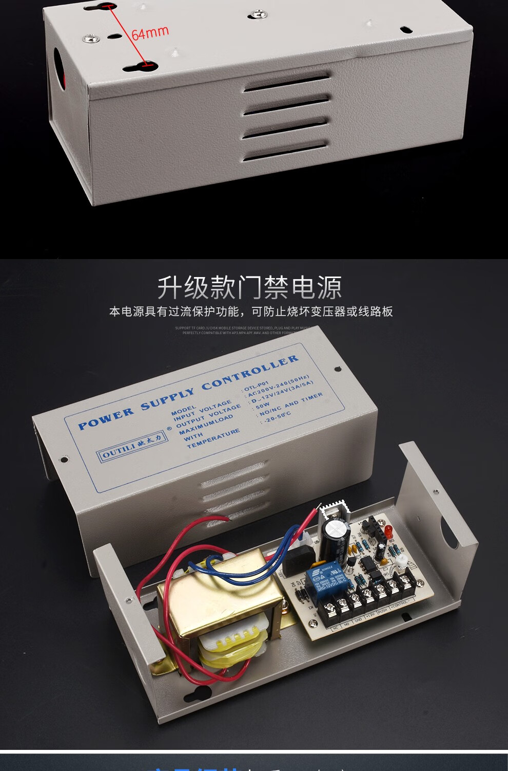 欧太力门禁电源控制器12V3A/5A变压器外接电插锁磁力锁12V常开常闭输出 升级款