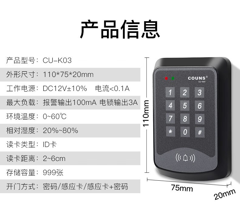 高优(COUNS)K03电子门禁系统控制器一体机家用小区单元门刷卡密码锁面板主机 K03(刷ID卡)
