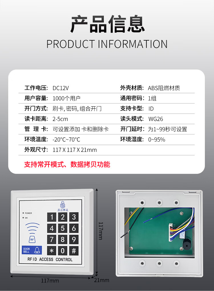 晶品赛福电子门禁系统一体机门禁室内机控制器