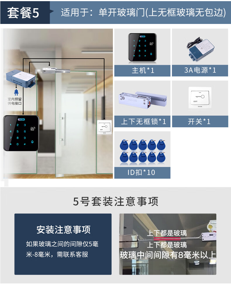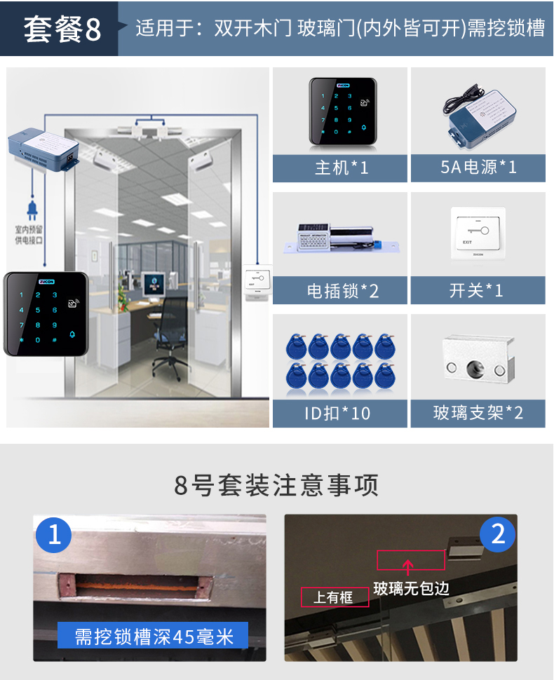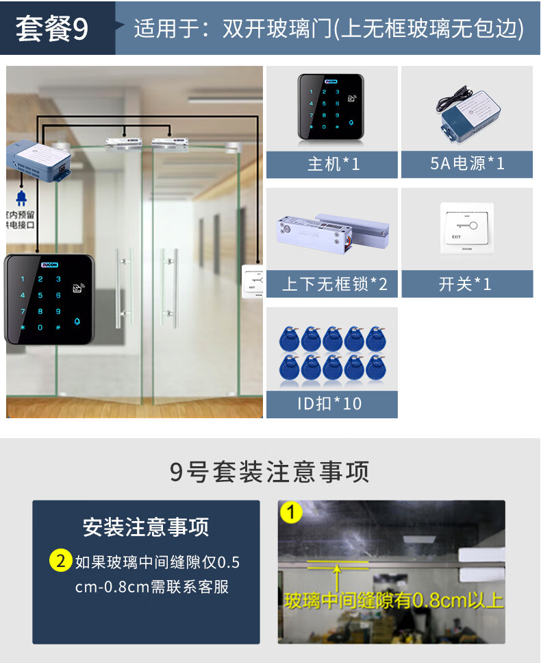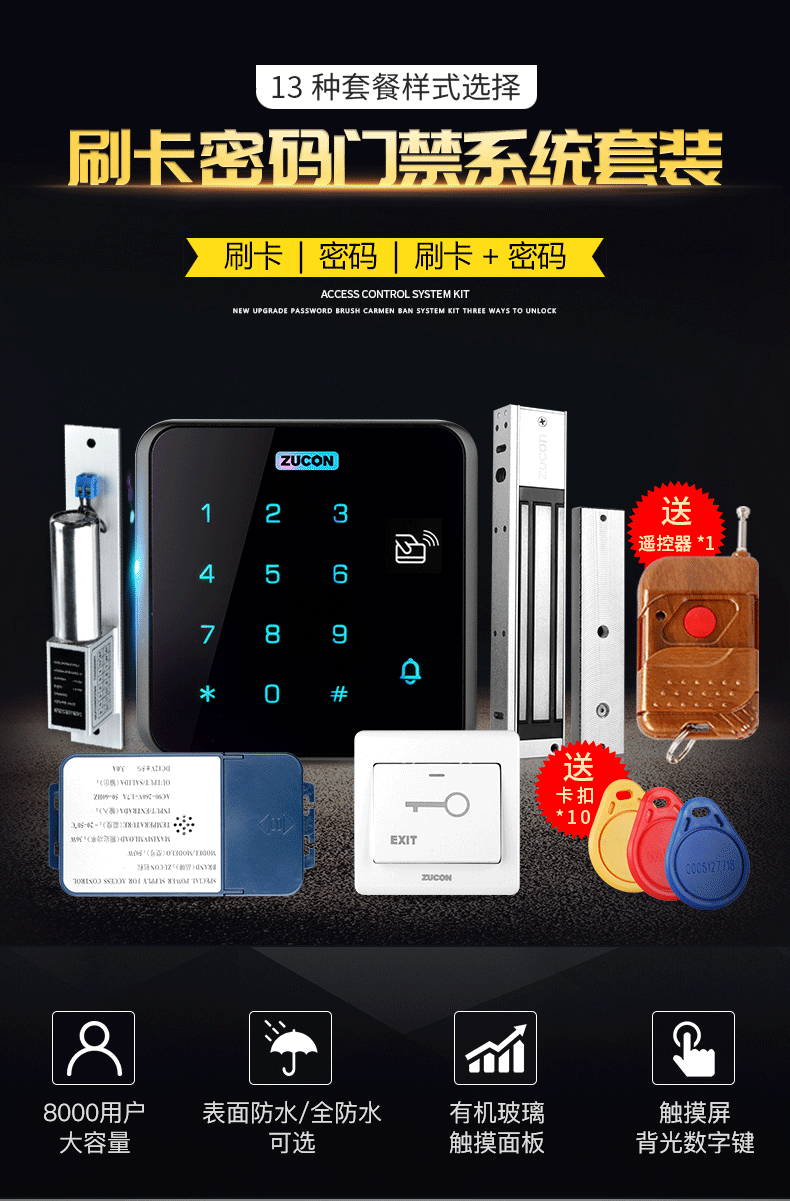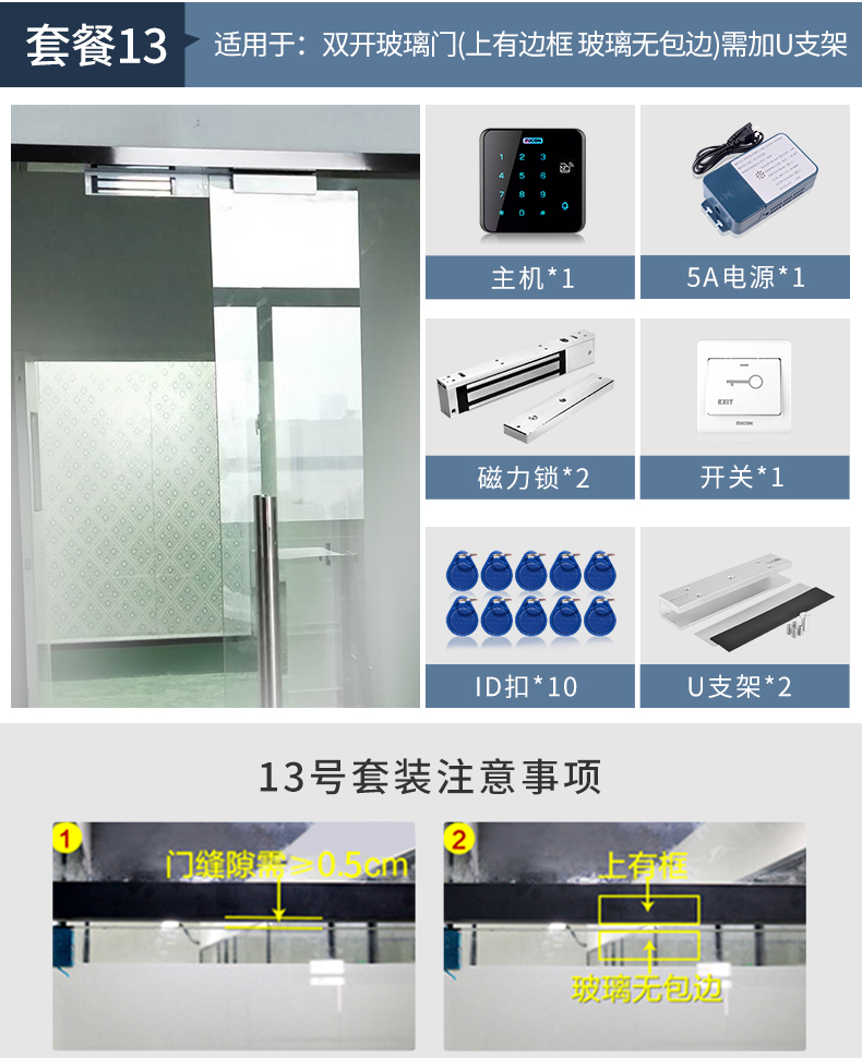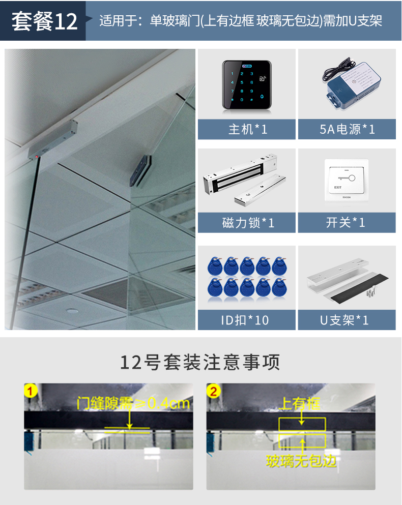 祖程X12刷卡密码门禁系统一体机电子门禁锁套装玻璃门电插磁力锁遥控 13号