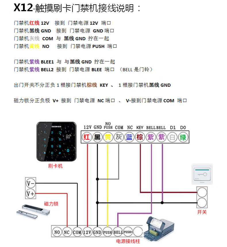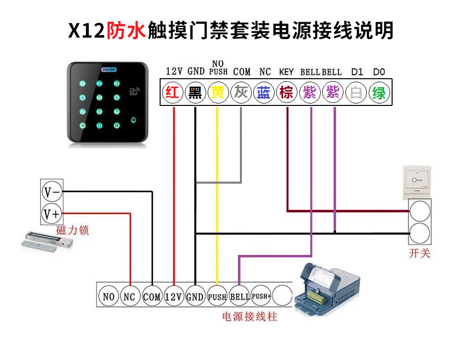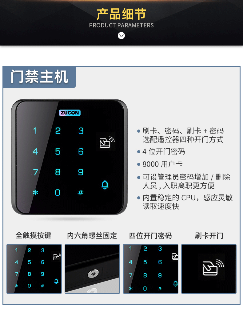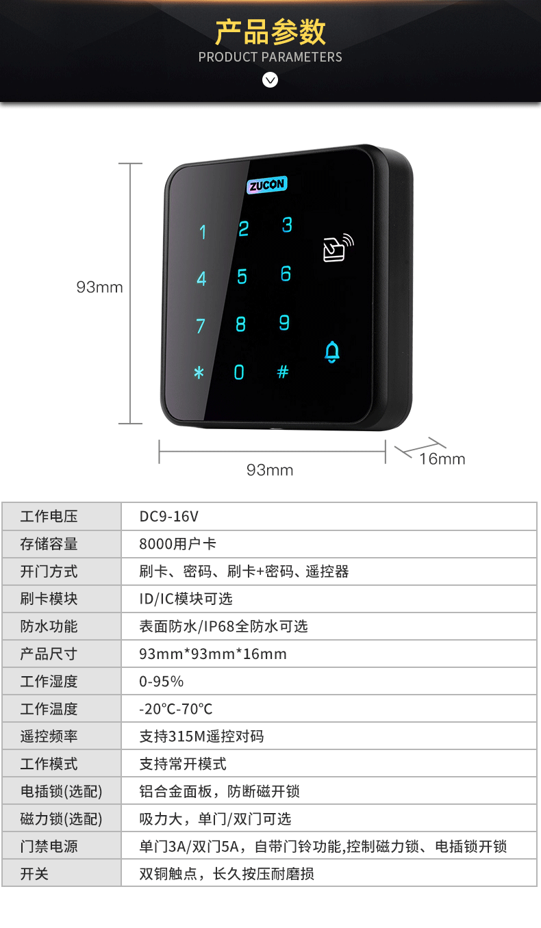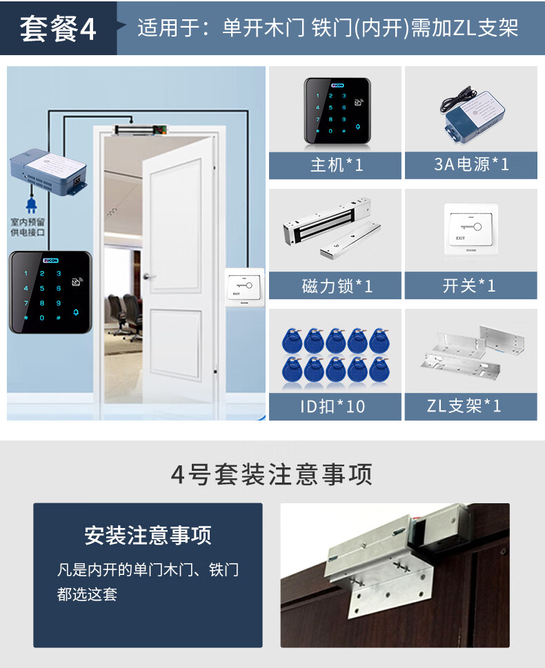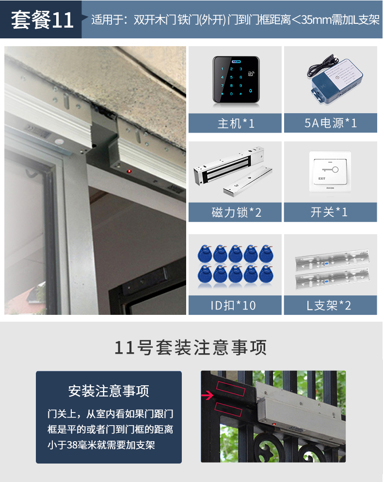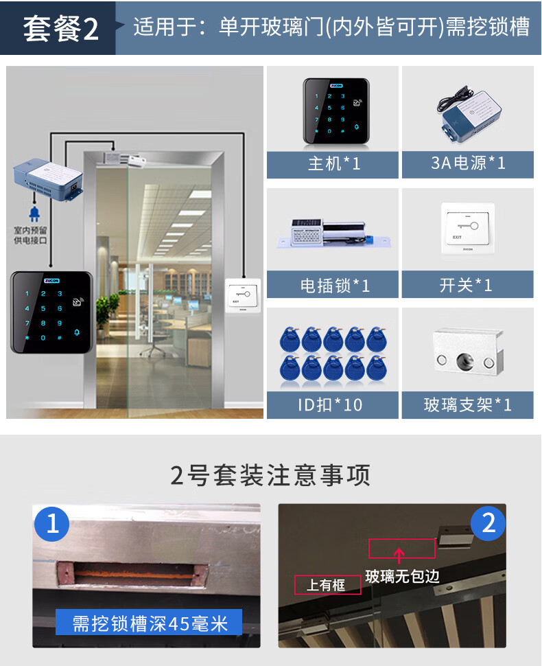 祖程X12刷卡密码门禁系统一体机电子门禁锁套装玻璃门电插磁力锁遥控 13号