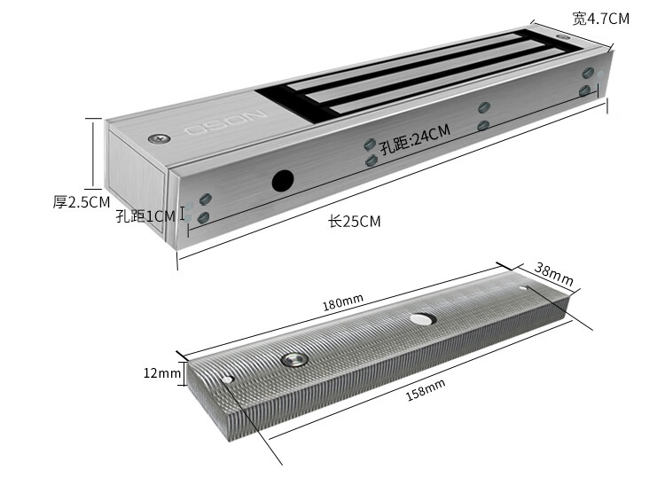 固尚GSON电磁锁磁力锁单开门280公斤12V带门磁室外家用工程