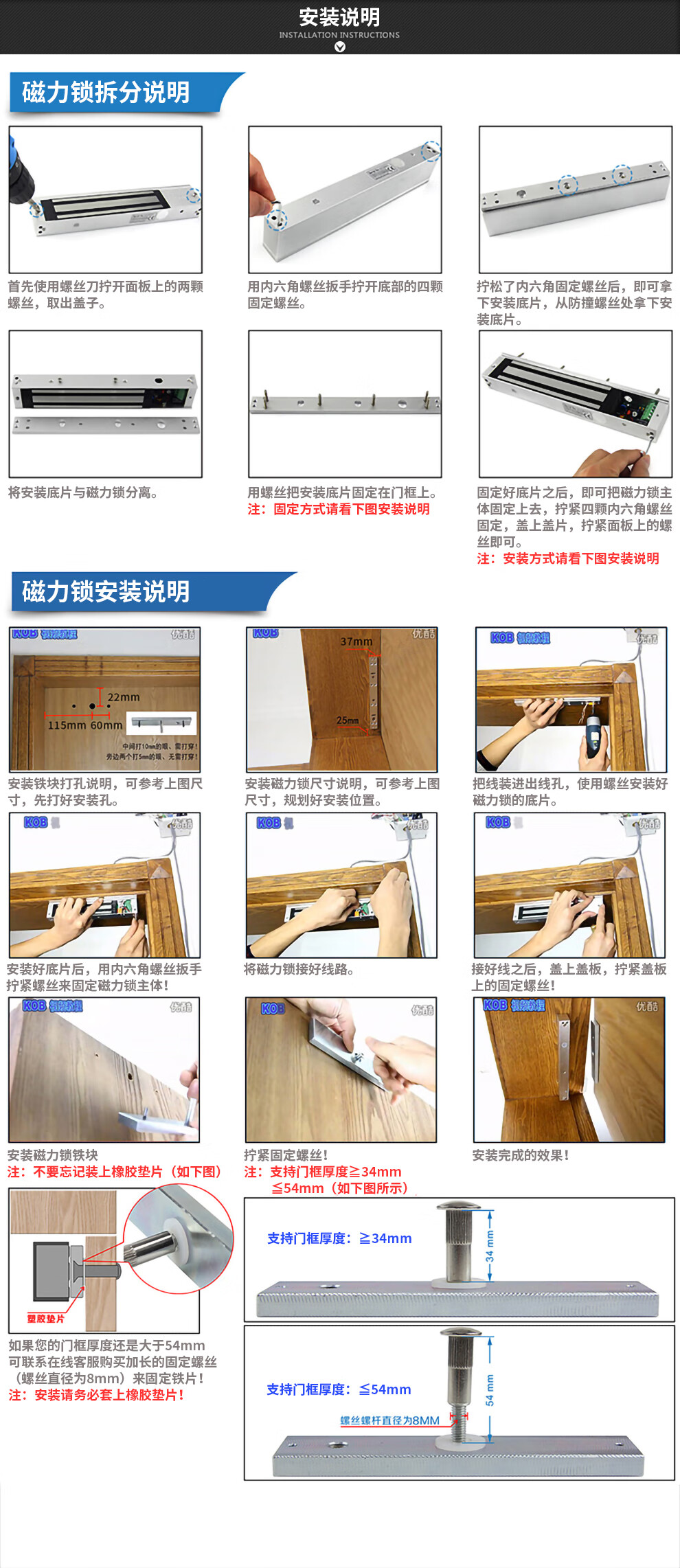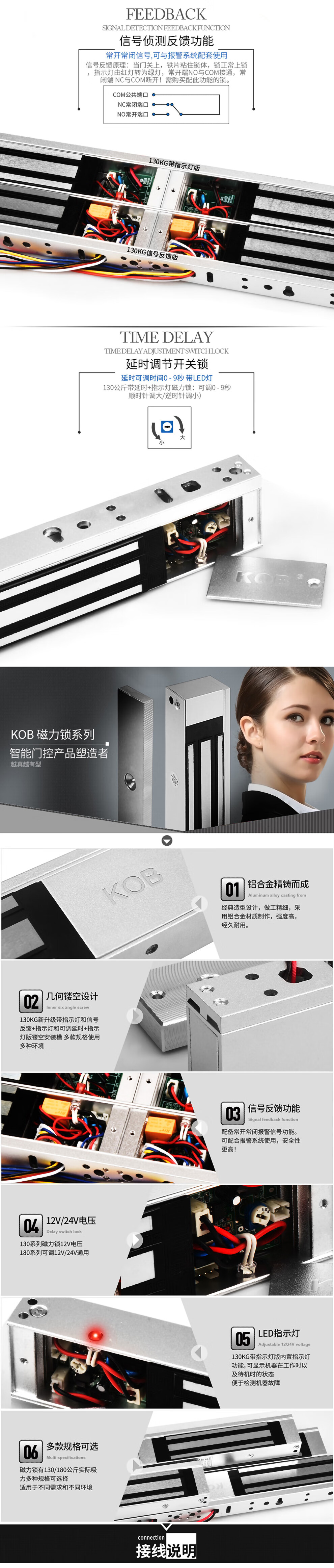 KOB单开门磁力锁电子电控磁吸锁延时信号反馈门禁小型电磁锁