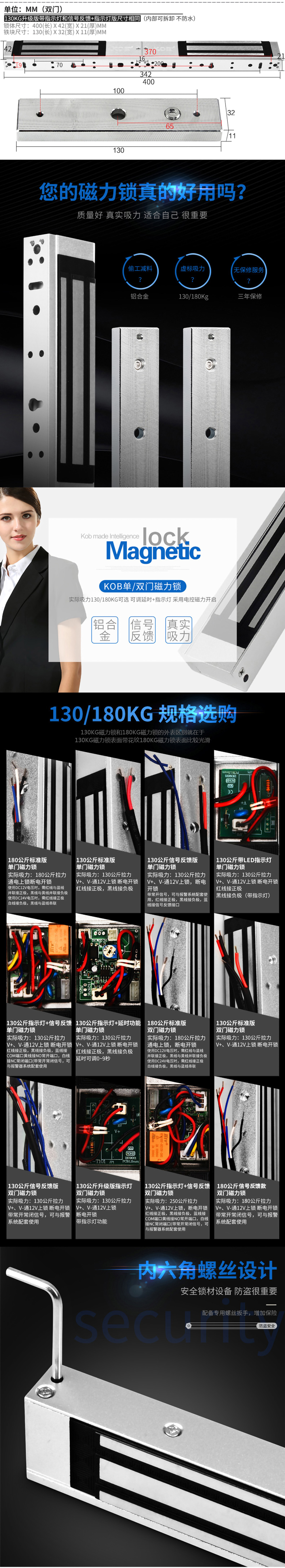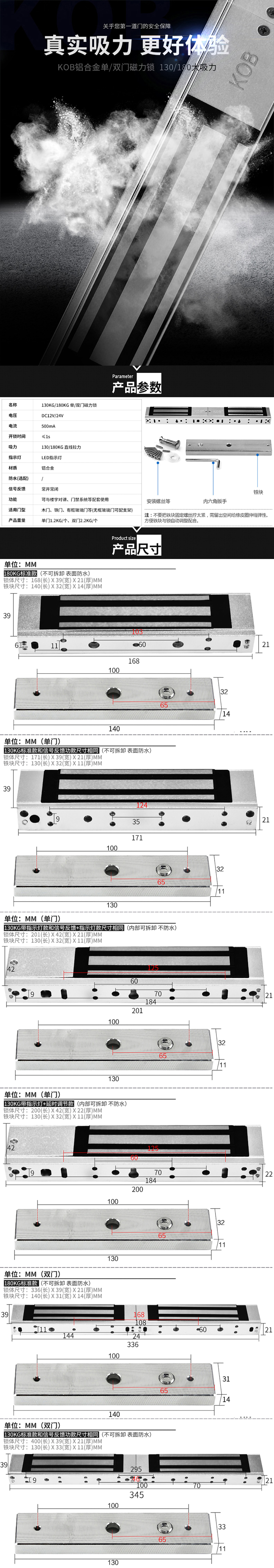 KOB双开门磁力锁电子电控磁吸延时信号反馈门禁电磁锁