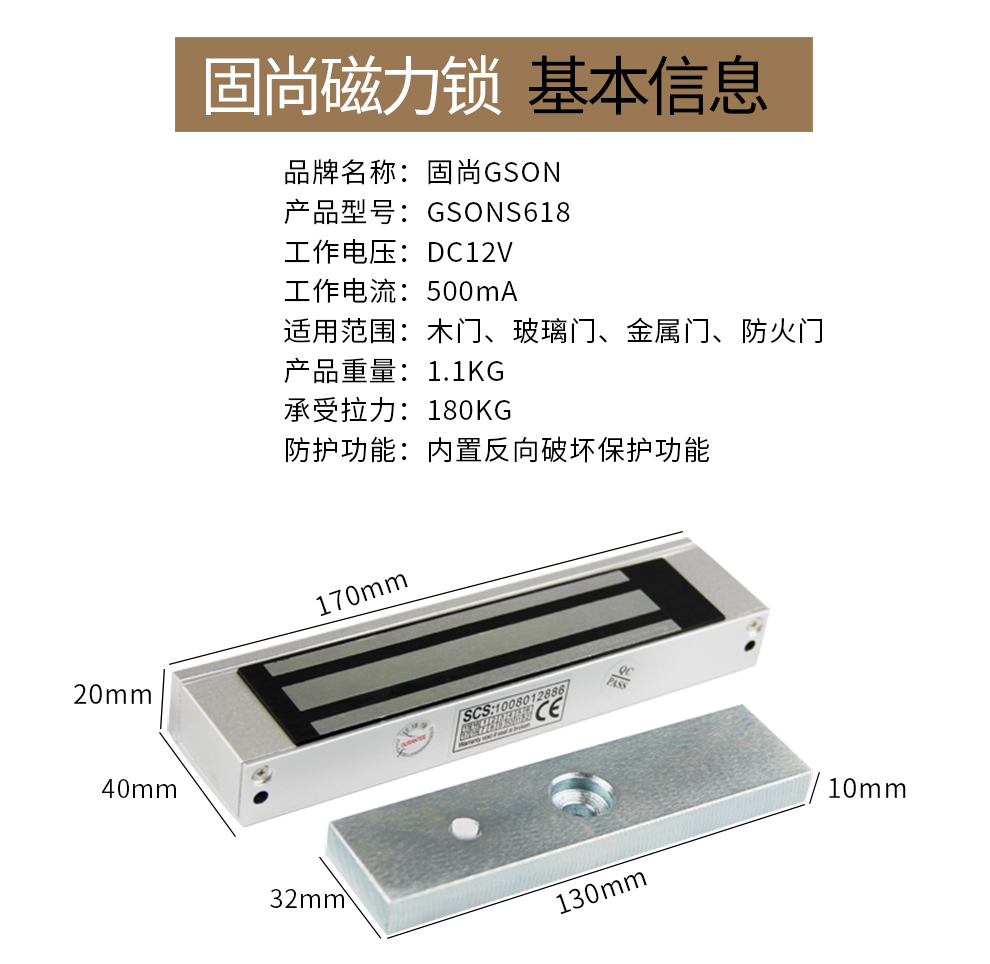 固尚(GSON)小区户外铁门木门防盗门磁力锁180公斤门禁锁电磁锁电控锁 180公斤磁力锁