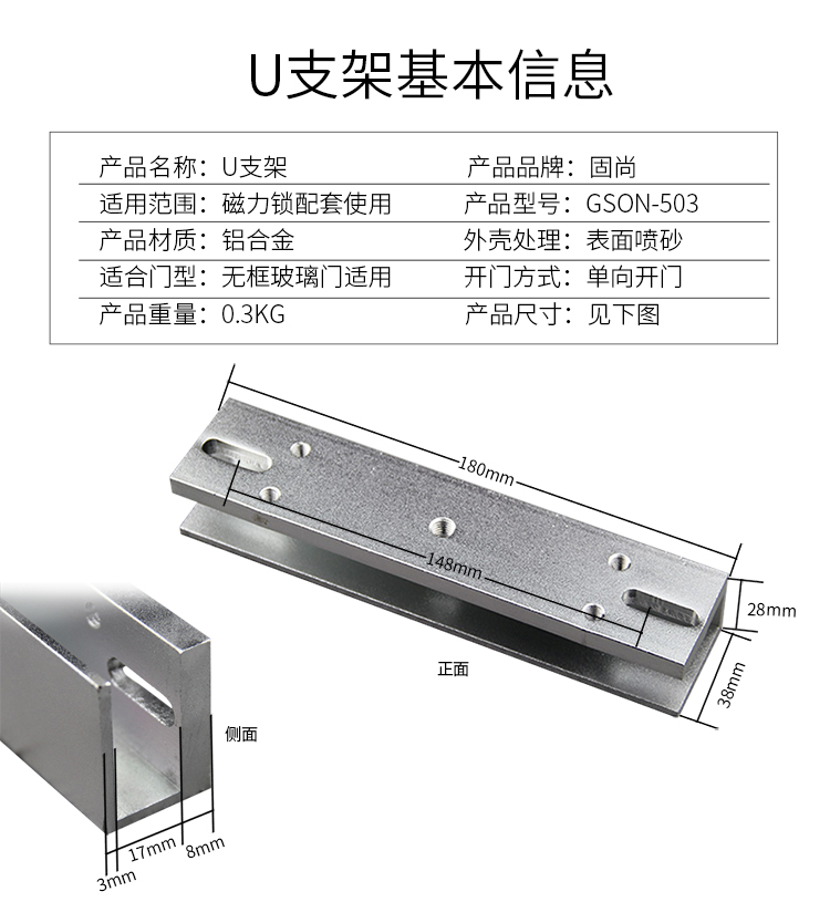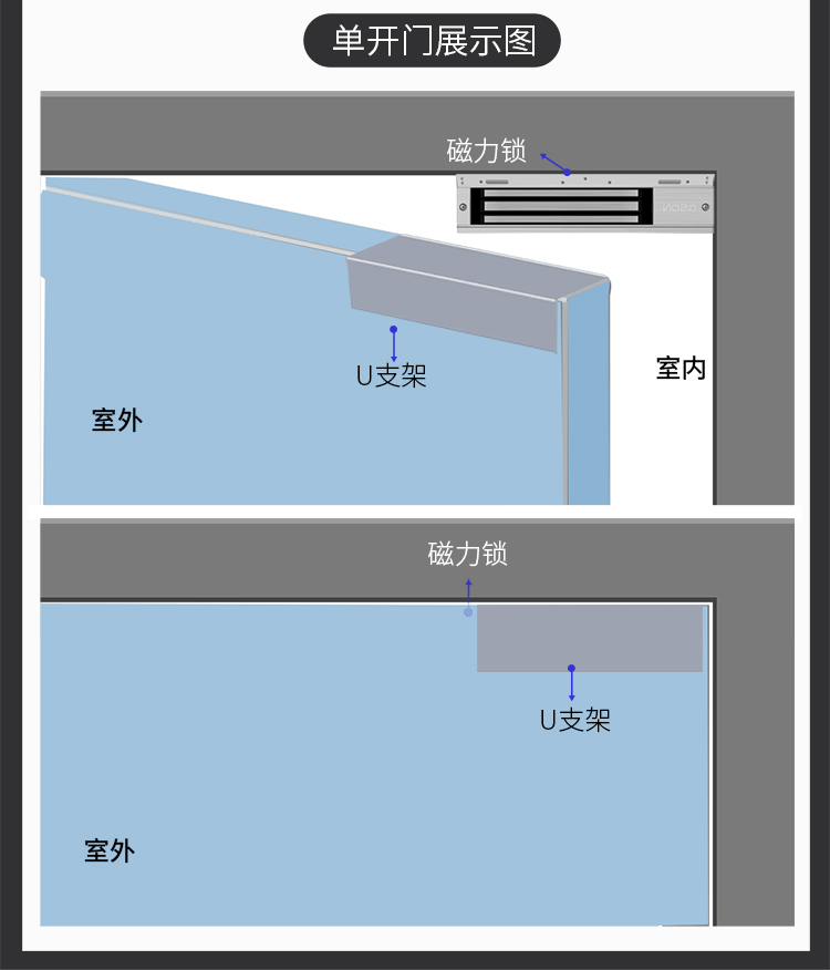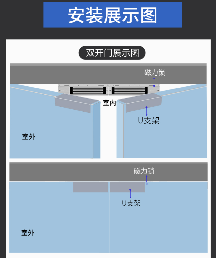 固尚GSON玻璃门门禁磁力锁U型门夹工程