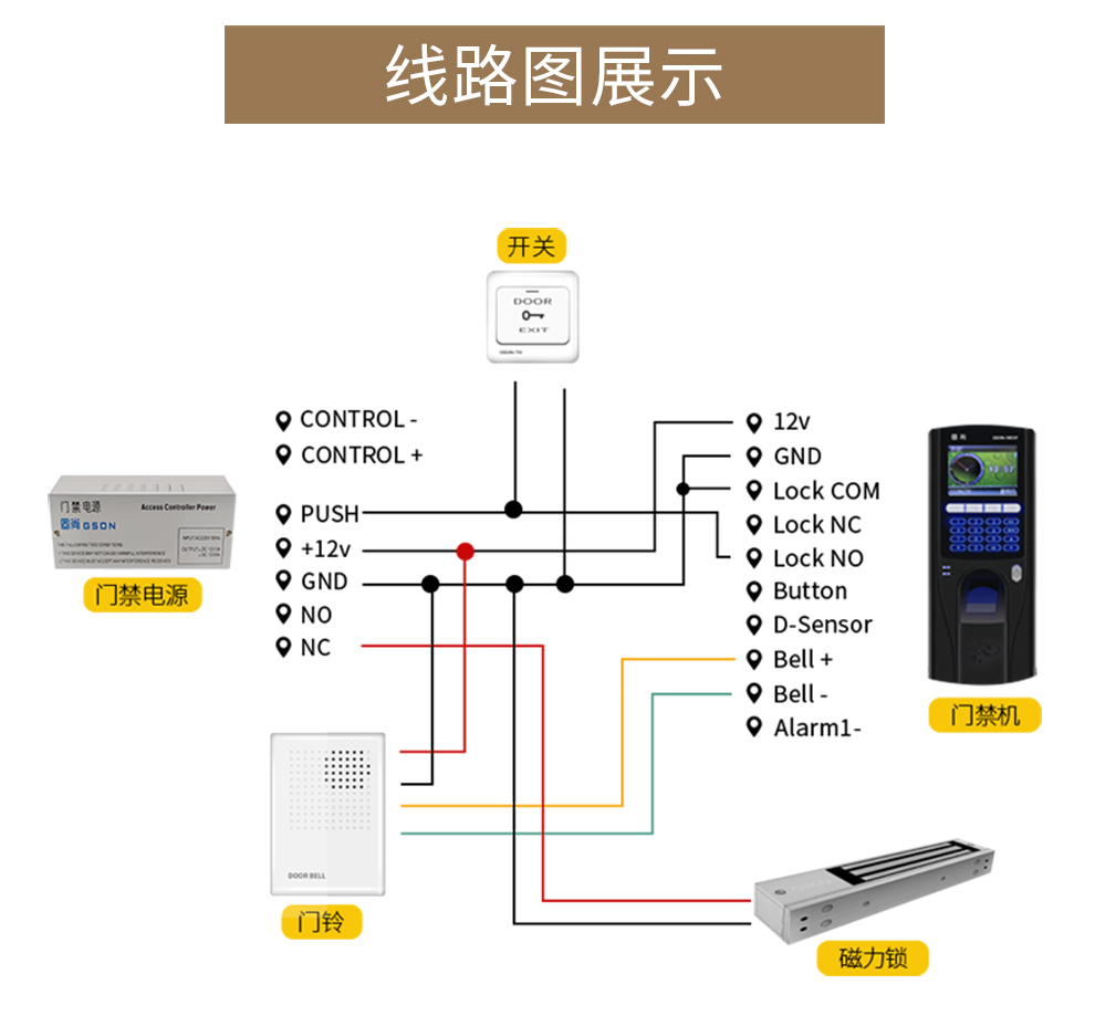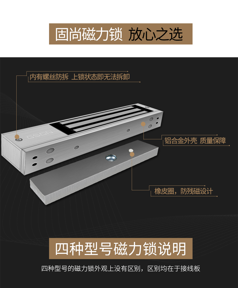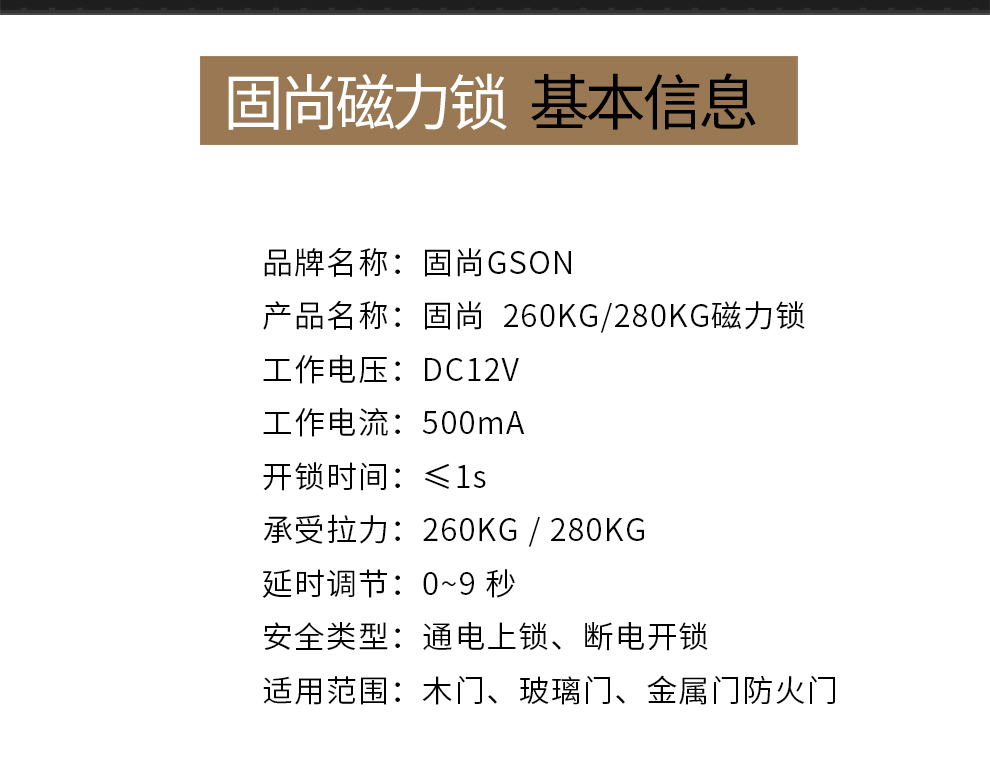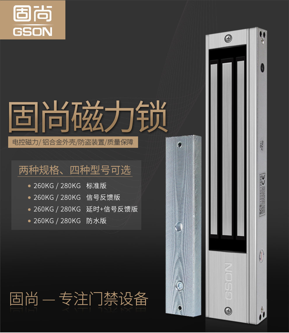 固尚磁力锁电磁锁电子门禁系统280kg公斤信号反馈门禁锁电控锁