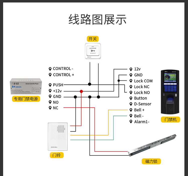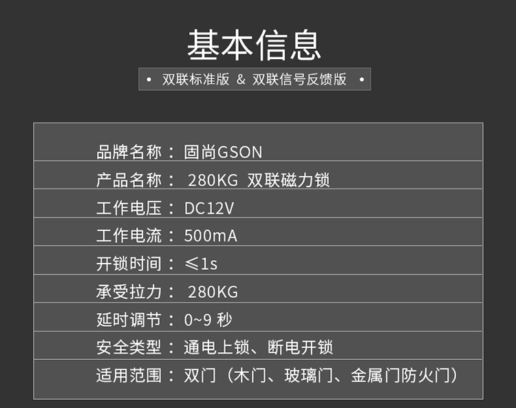 固尚GSON电磁锁磁力锁双开门280公斤12V电磁锁带门磁室外