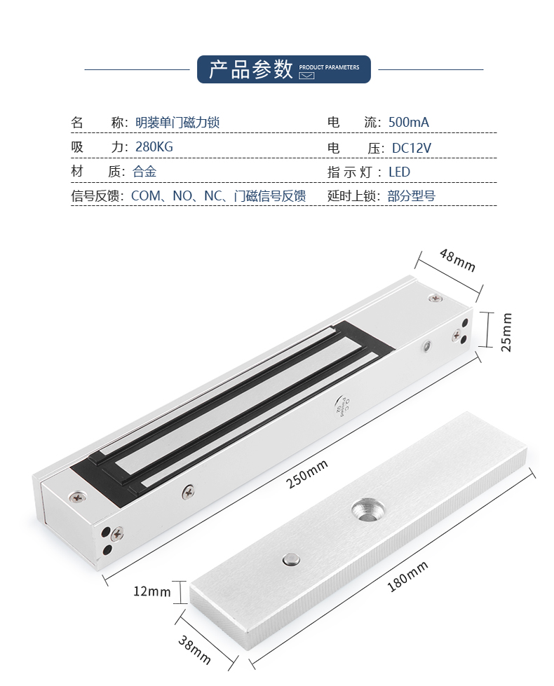 微耕门禁单门磁力锁280KG电磁锁电磁铁门禁门磁12V电控锁