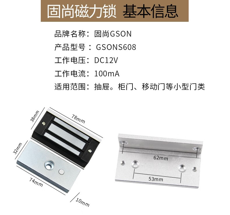 固尚磁力锁快递柜锁电子门禁系统磁力锁 小型60公斤磁力锁电磁锁 60公斤迷你磁力锁