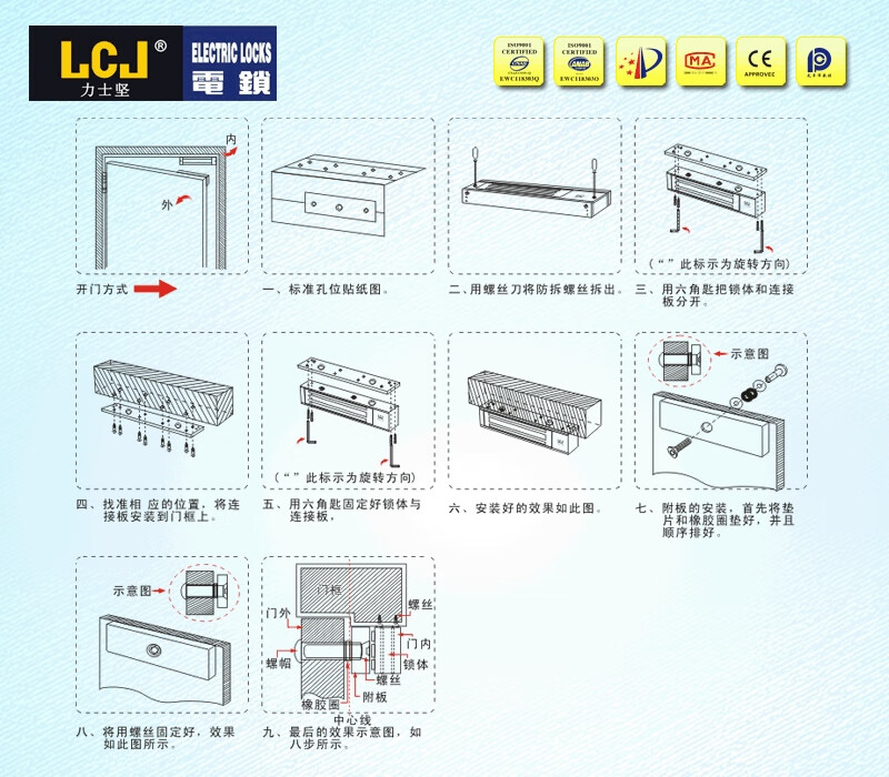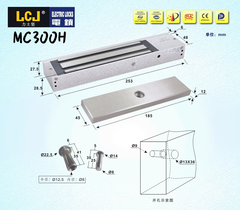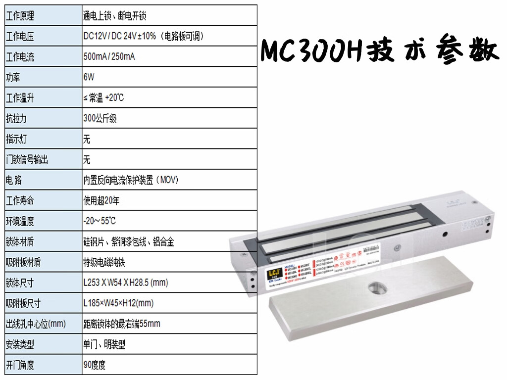 力士坚LCJ力士坚磁力锁MC300H300公斤单门明装门禁电锁风淋室洁净室用锁