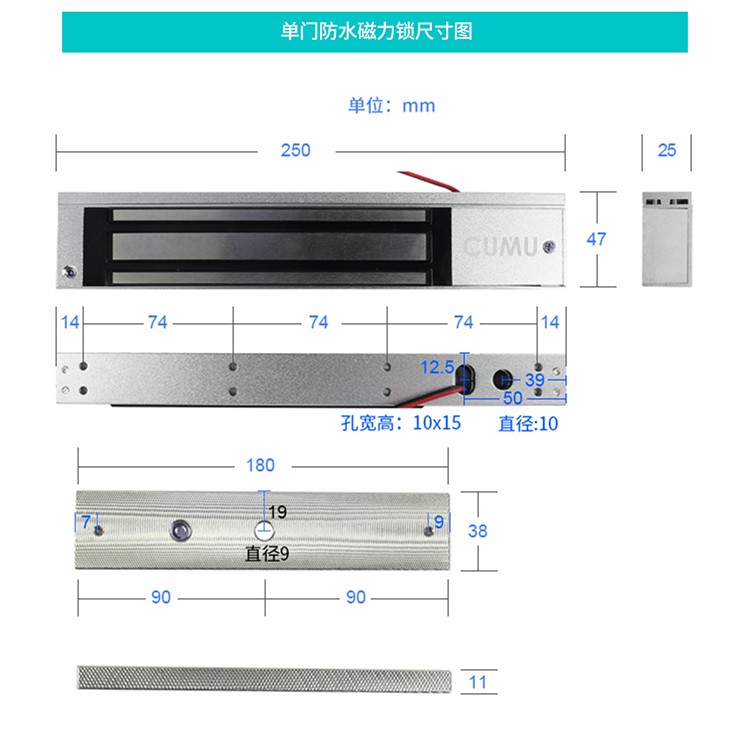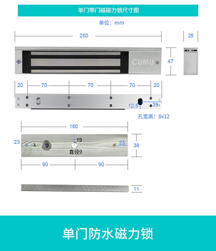 CUMUcumu川木磁力锁280kg电磁锁闭门器感应门 电控锁 电子锁吸力锁