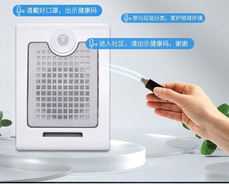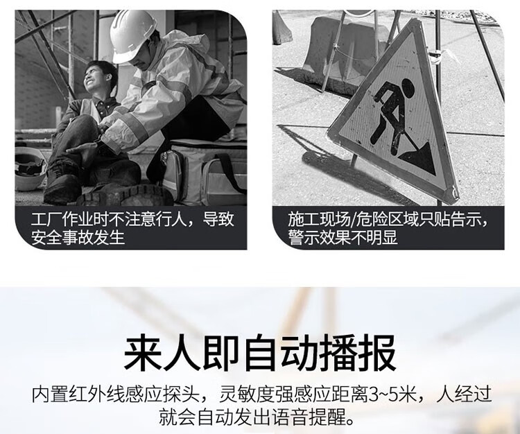 汉钦安全感应语音提示器红外线人体感应语音播报巫疫情广播喇叭智能工地用施工现场安全提醒报警器音箱