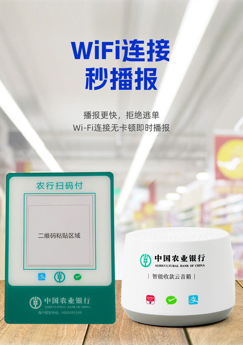 szzt农业银行扫码收款语音播报器智能收款音箱农行收款喇叭商户云扩音器二维码收钱器