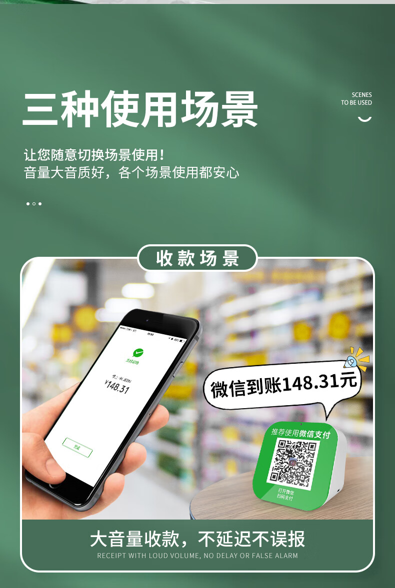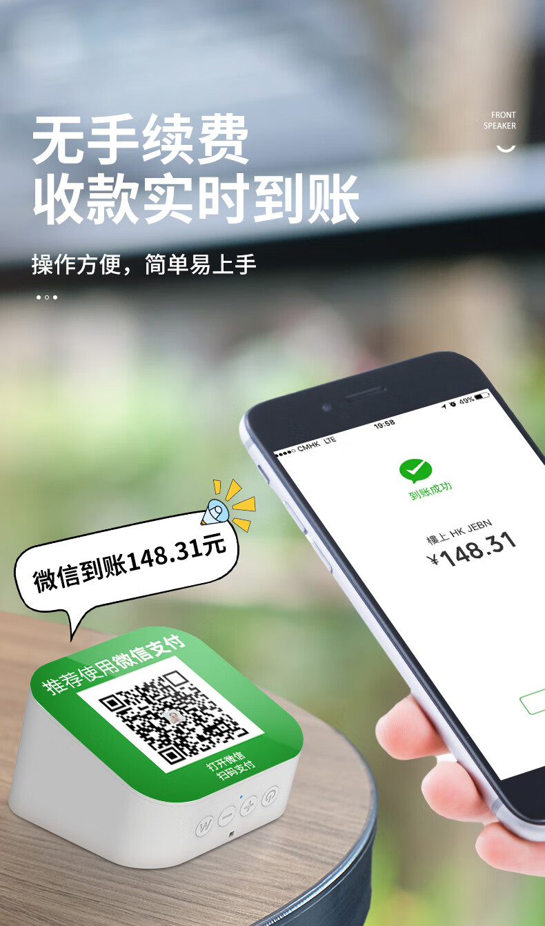 汉钦 智能商户服务收款农行商户云音箱农业银行扫码付钱语音播报器手机不在收款提示音响